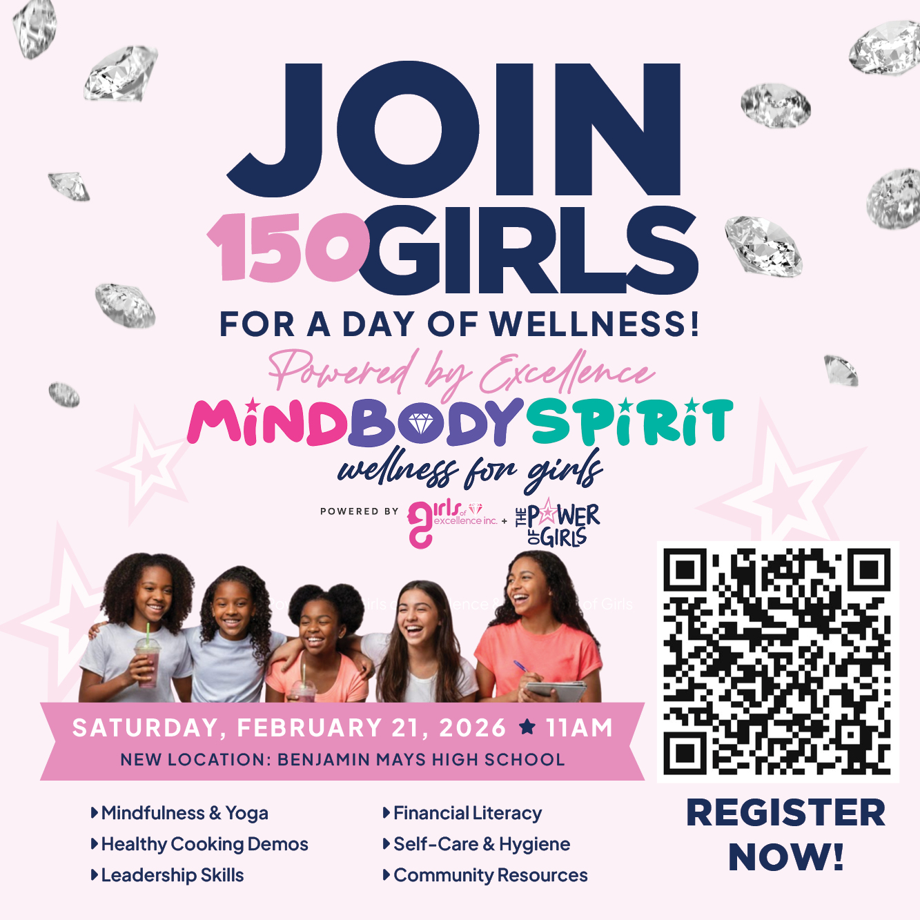 Join us on February 21st at Benjamin Mays High School for an impactful day dedicated to supporting and inspiring the next generation of leaders. The Mind, Body & Spirit event is designed to provide young girls with a community of encouragement, empowerment, and growth.